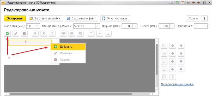 5. Зажав левую кнопку мышки, выделите нужную область будущей составляющей этикетки. 6. Кликнув правой кнопкой мышки, выберите меню "Добавить", или воспользуйтесь кнопкой быстрого доступа сверху.
