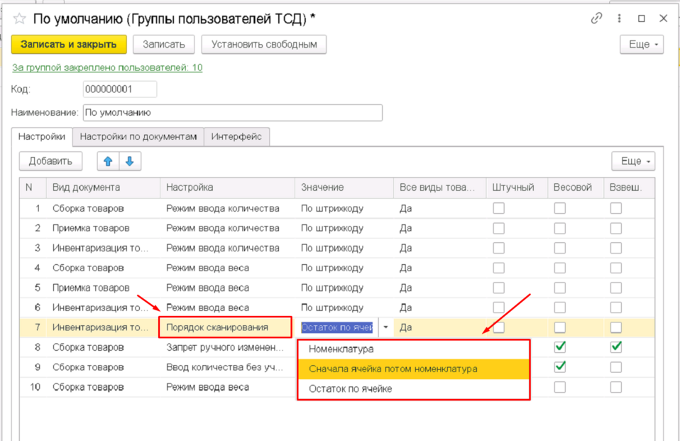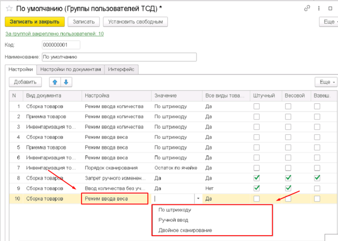 Режим ввода веса - позволяет задать настройку, которая определяет каким способом пользователь сможет вводить вес на ТСД;