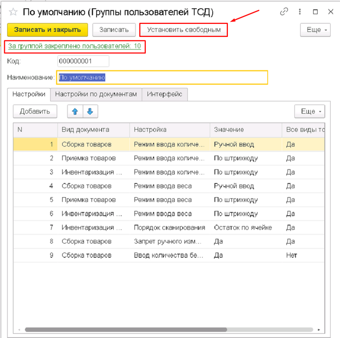 3. Можно добавить пользователей по умолчанию, нажав "Установить свободным".
