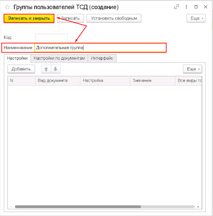 1. Во вкладке «Группа пользователей ТСД» нажать «Создать».