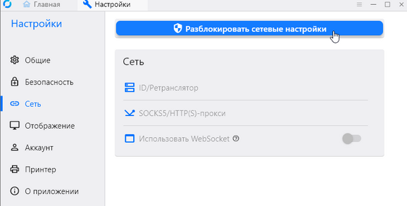 В разделе Сеть разблокируйте сетевые настройки, если потребуется