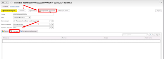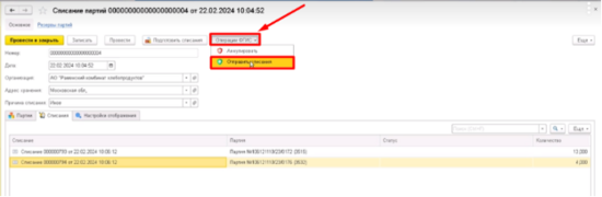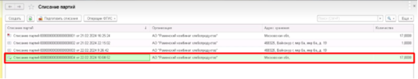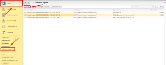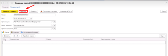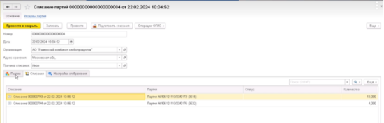 - Зайти в раздел Списание партий