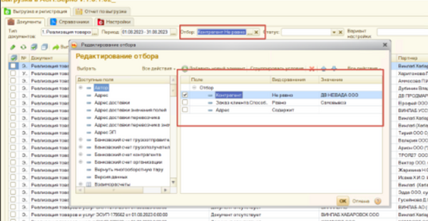 Автоматом заполниться отбор и отобразятся нужные документы