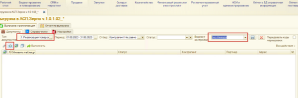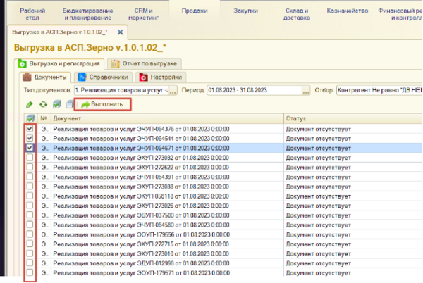 Выгрузка документов из обработки в АСП Зерно