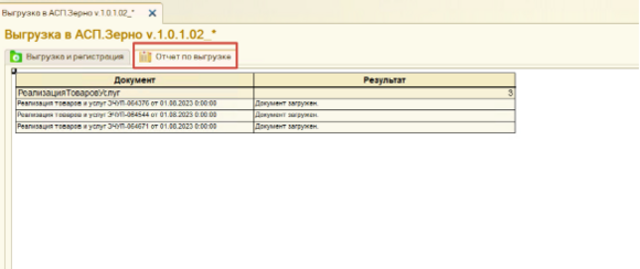 Результат можно посмотреть в Отчете по выгрузке