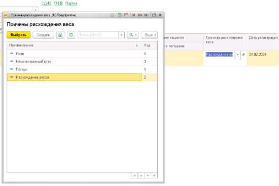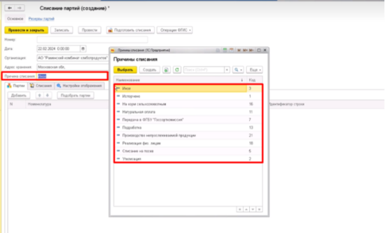 Указать причину списания из справочника ФГИСа