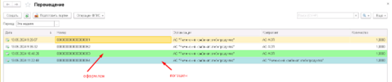 Гашение в документе Перемещение