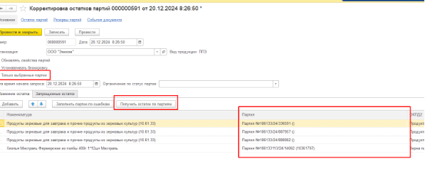Только выбран партии1