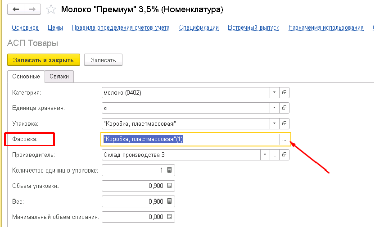 1. Можно самостоятельно указать в фасовке маркировку, тогда она будет тянуться из карточки номенклатуры, независимо от того, заполнена она в складской записи или нет, и какая упаковка там указана. В карточке номенклатуры на вкладке Меркурий в строке "фасовка" заполняется маркировка.