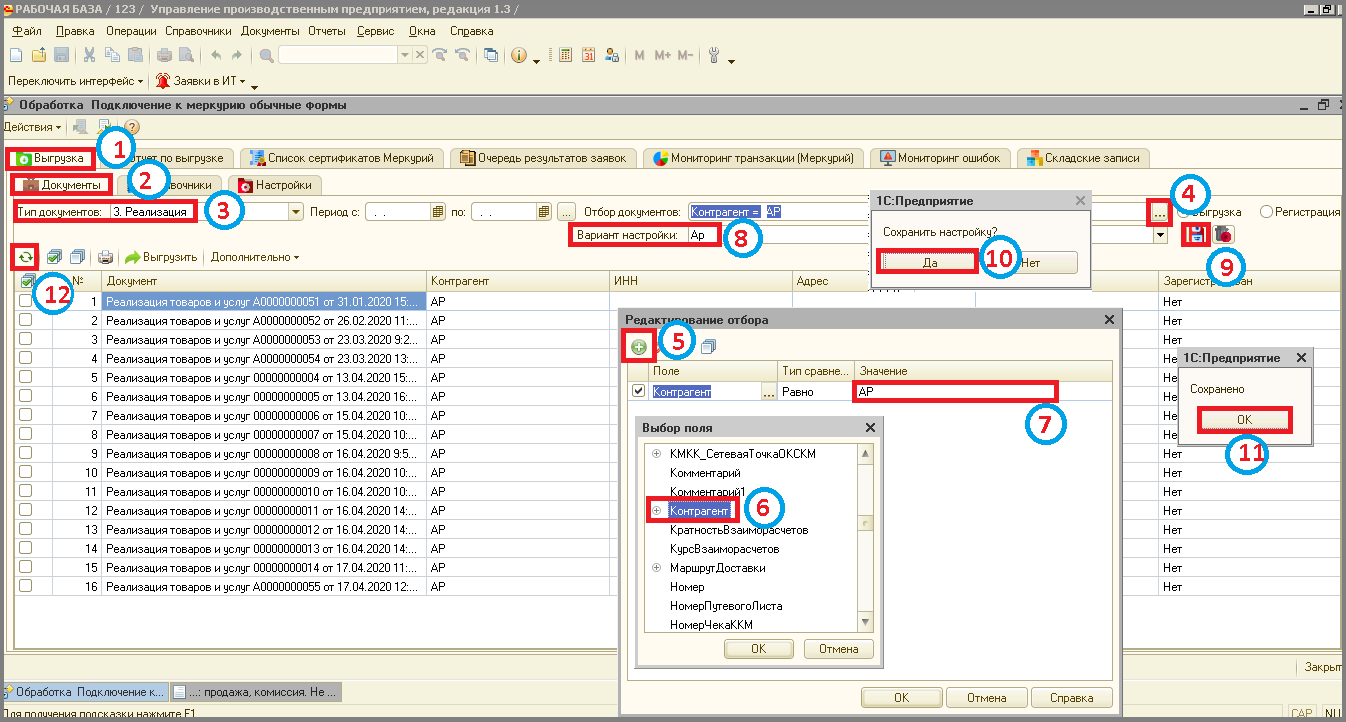 - Нажать кнопку "ОК" => Отбор сохранится и его можно будет в любое время выбрать из выпадающего списка в поле "Вариант настройки".