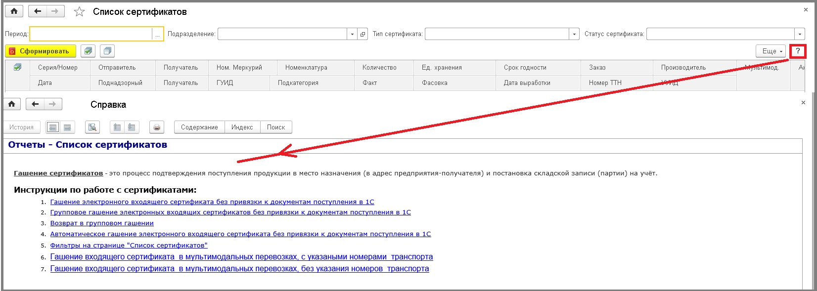 - Нажать кнопку "Открыть справку" => Откроется окно "Справка".