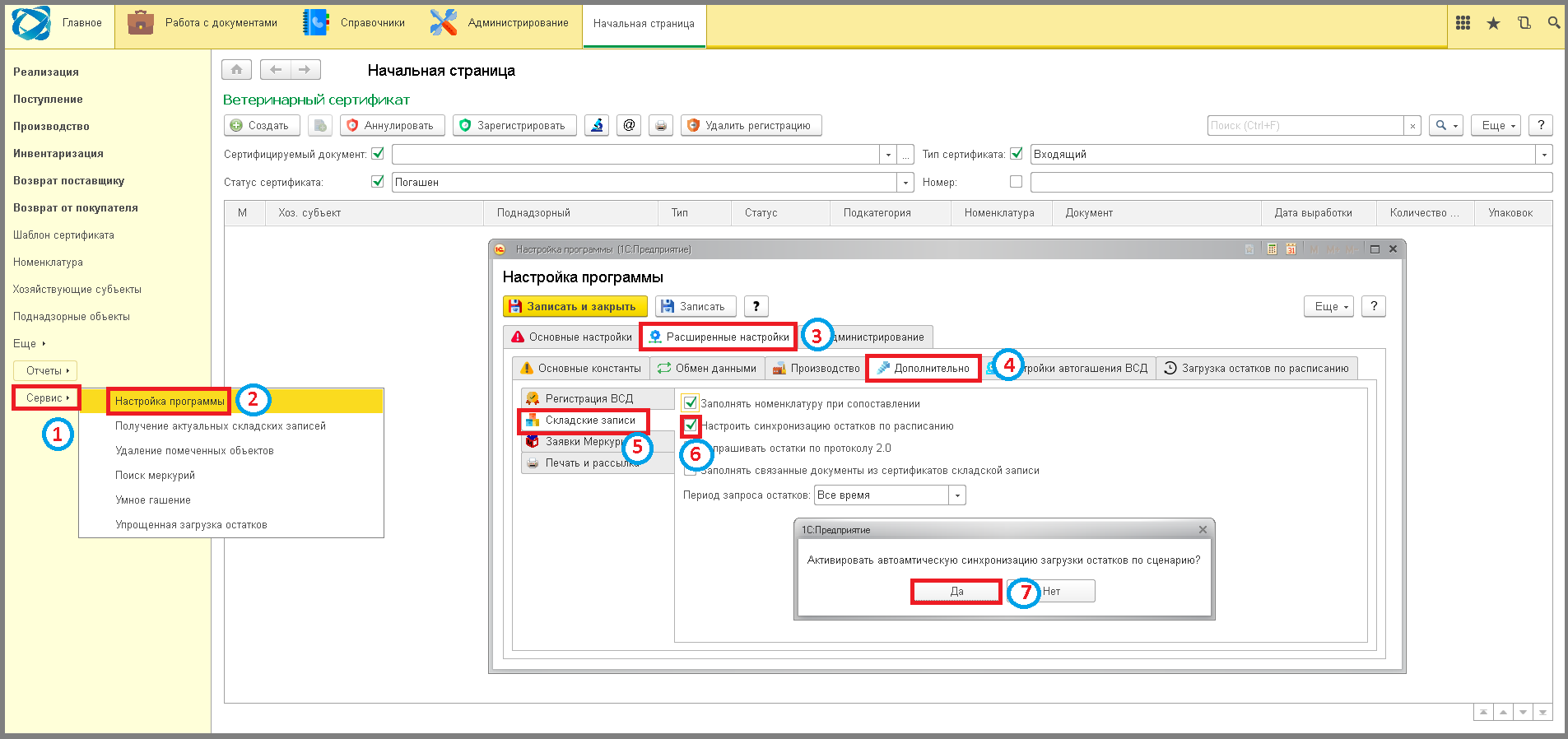 - Выделить галочкой поле "Настроить синхронизацию остатков по расписанию" => Появится сообщение "Активировать автоматическое синхронизацию остатков по расписанию?".