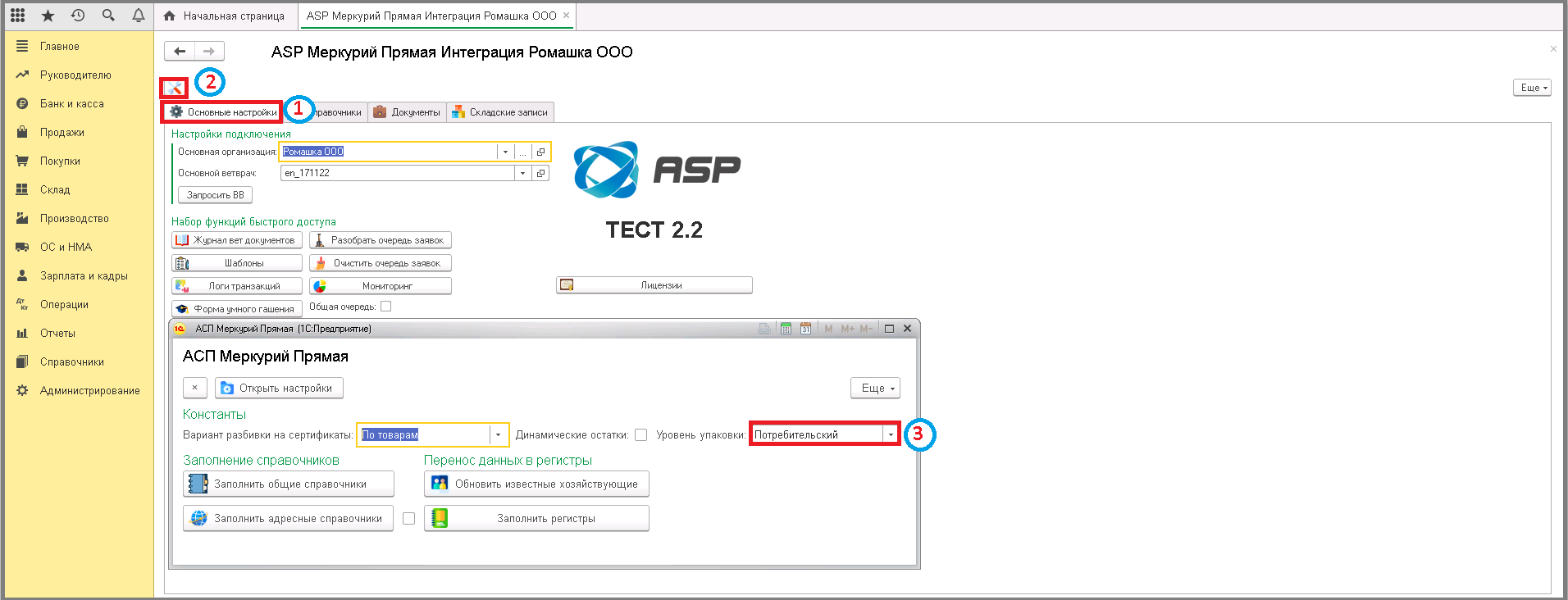 Если в карточке номенклатуры фасовка не заполнена, то при создании сертификата в табличную часть фасовки будет подтягиваться: уровень упаковки из основных настроек, а коэффициент всегда 1:1.
