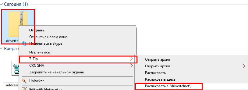 3. Переместить содержимое архива в постоянную папку (например: C:\DriverTelnet) Внимание! Путь к целевой папке не должен содержать пробелы и кириллические символы!