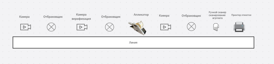Товар едет по линии камера сканирует КМ шт. Далее или аппликатором наносится этикетка КИГУ или по наполнению агрегата этикетка выходит из принтера. Далее ее сканируют ручным сканером